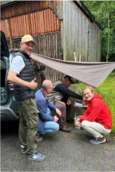 bei dieser Gelegenheit draußen ihr Equipment auf und testen dabei ihre